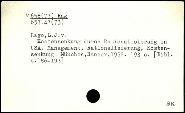 Rago,L.J.Vc Kostensenkung durch Rationalisierung in USA.