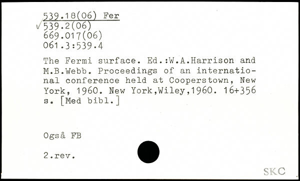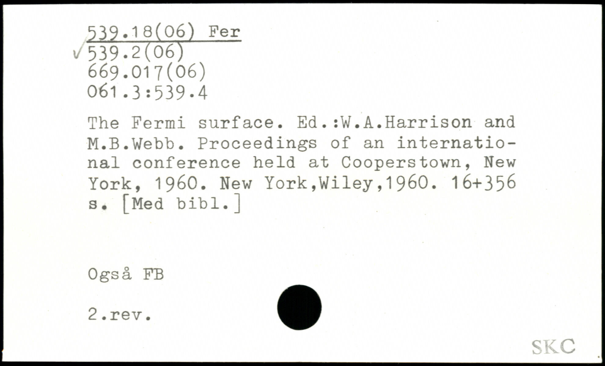 The Fermi surface. Ed.:W.A.Harrison and M.B.Webb. Proceedings of an international conference held at