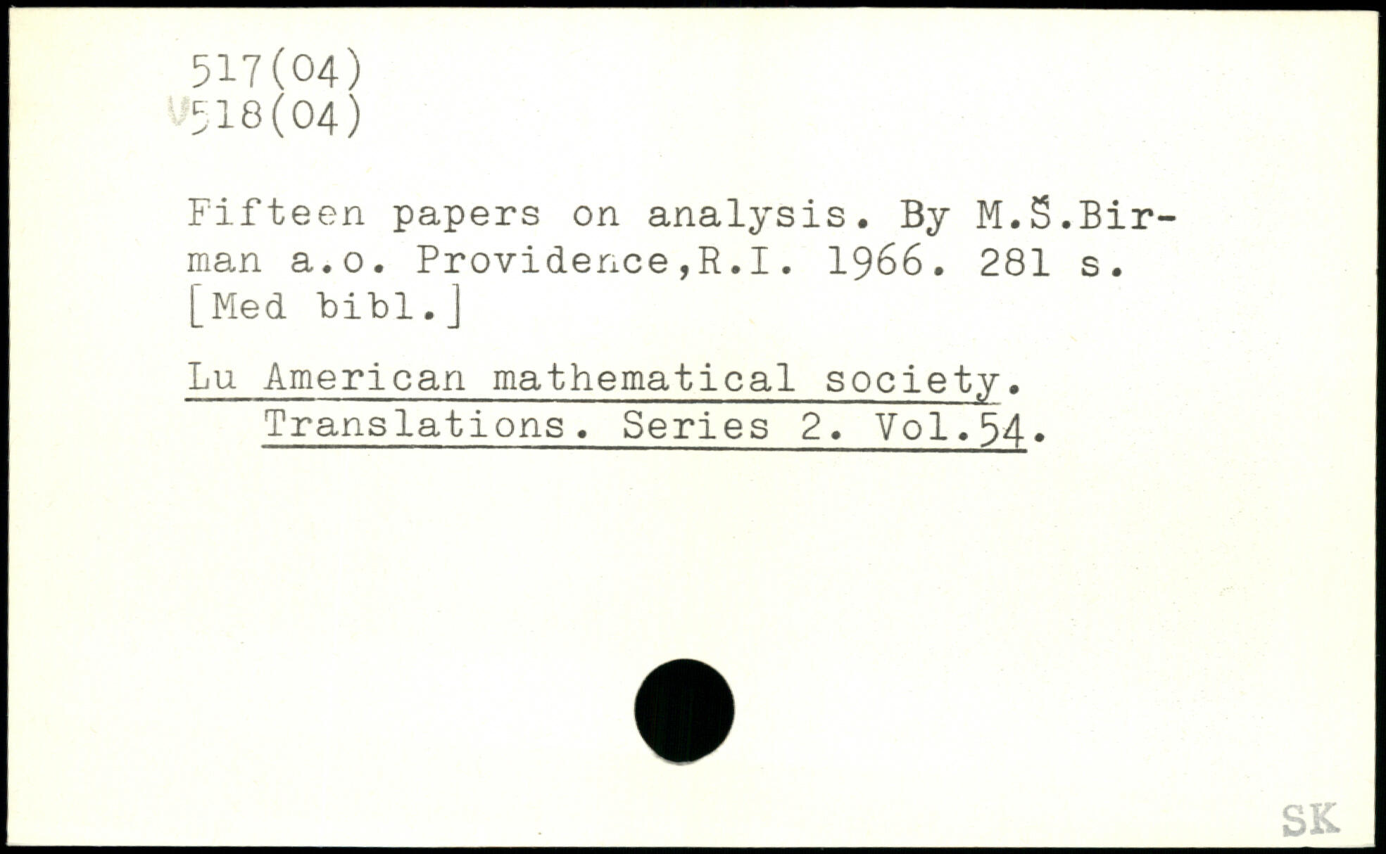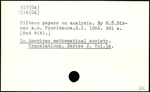 Fifteen papers on analysis. By M.5.Birman a.o. Providence,R.I. 1966.