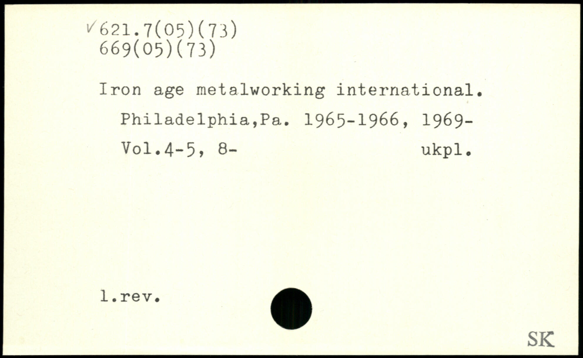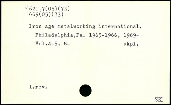Iron age metalworking international. Philadelphia,Pa. 1965-1966, 19&9-