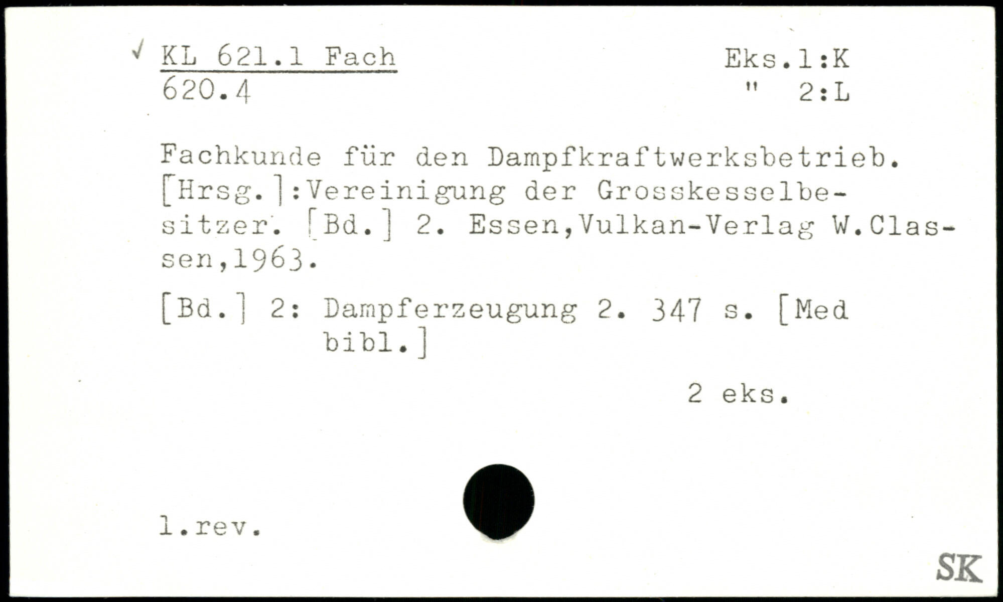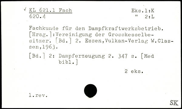 Fachkunde für den Dampfkraftwerkshetrieh. ["Hrsg. ]: Vereinigung der Grosskesselbesitzer. [Bd.] 2. Essen,Vulkan-Verlag W.Clas-sen,1963. [Bd.] 2: Dampferzeugung 2.