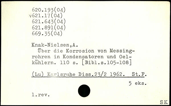 Über die Korrosion von Messingrohren in Kondensatoren und Oel-kühlern.