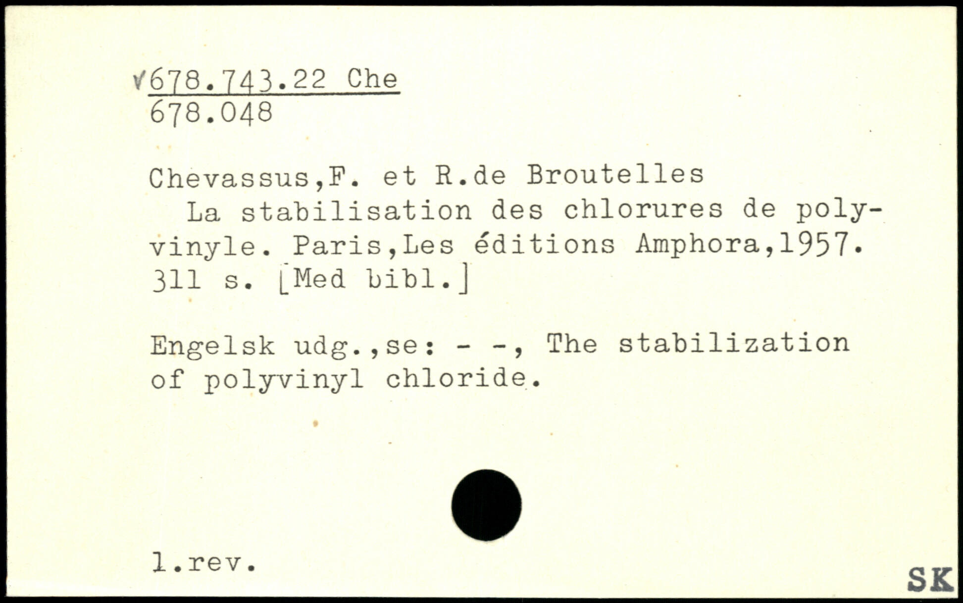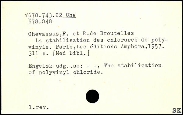Chevassus,F. et R.de Broutelles La stabilisation des chlorures de poly-vinyle.