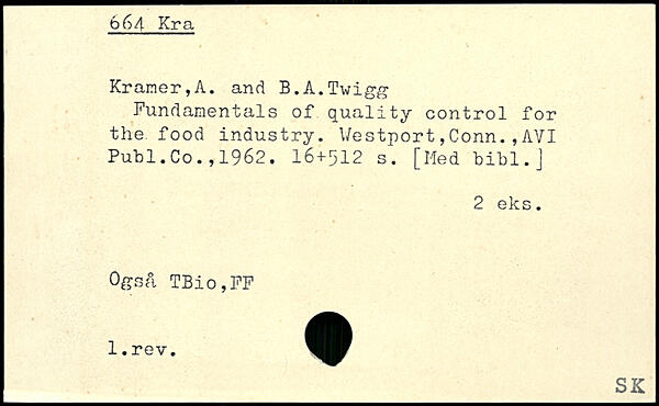 Fundamentals of quality control for the food industry. Westport,Conn.,AVI Publ.Co.,1962.