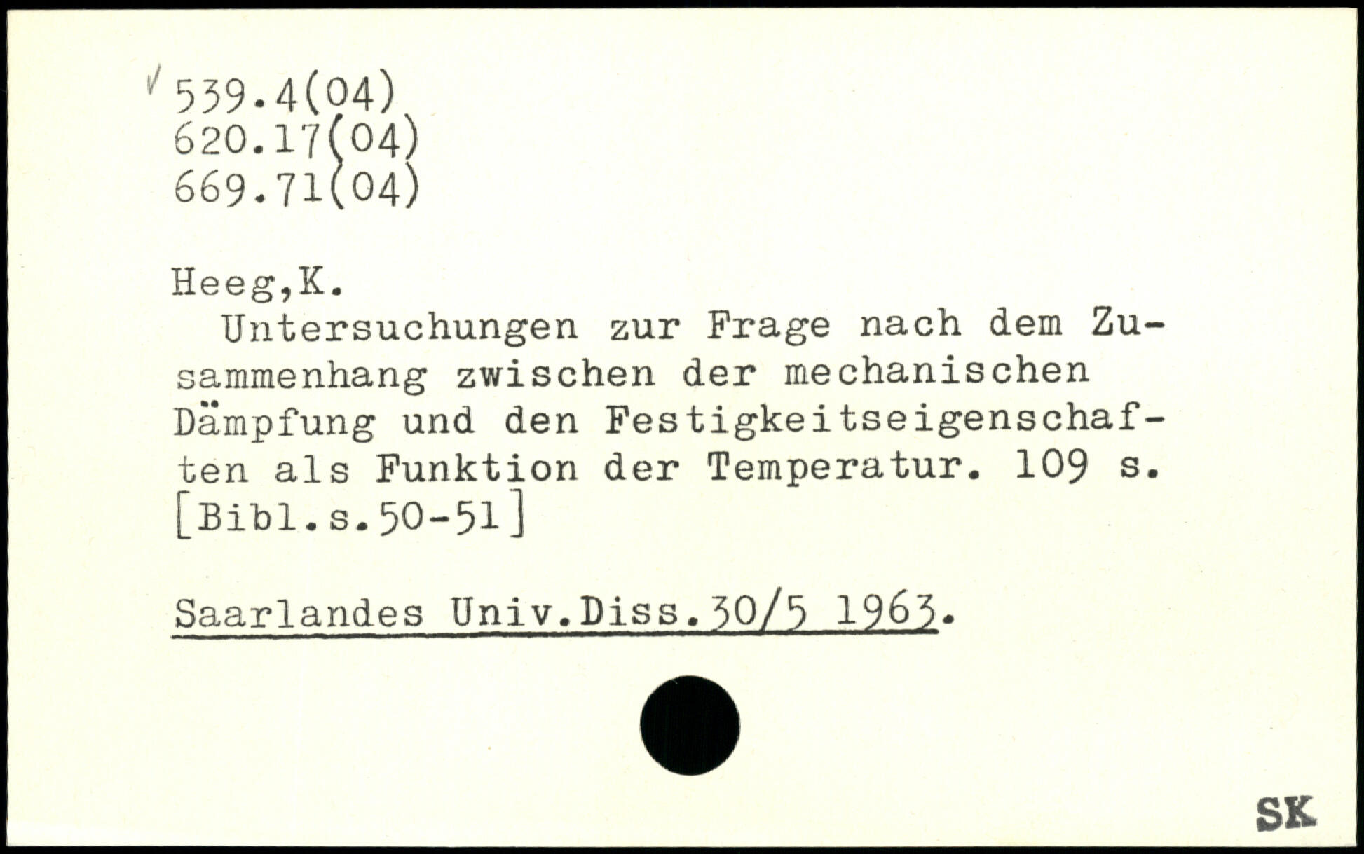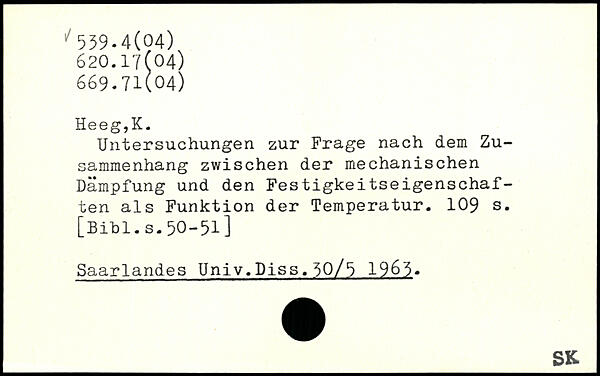 Untersuchungen zur Frage nach dem Zusammenhang zwischen der mechanischen Dämpfung und den Festigkeitseigenschaf-ten als Funktion der Temperatur.