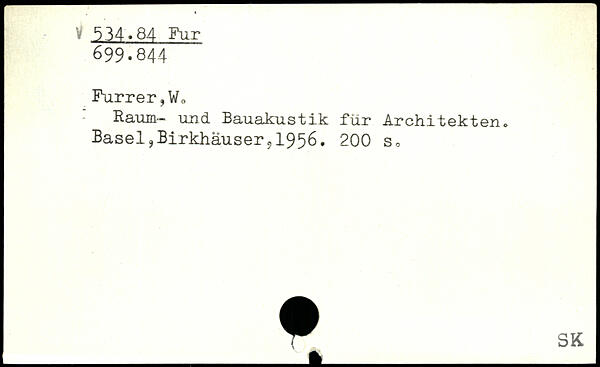 Furrer,Wc Raum— und Bauakustik für Architekten, Basel?Birkhäuser51956
