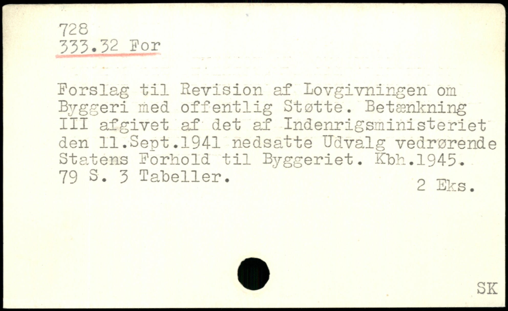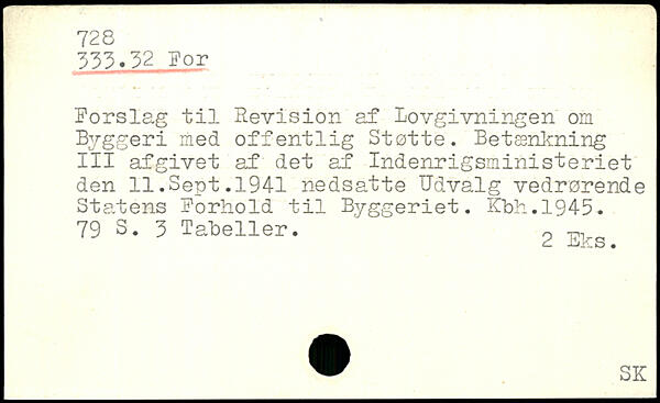 Forslag til Revision af lovgivningen om Byggeri med offentlig Støtte. Betænkning III afgivet af det af Indenrigsministeriet den ll.Sept.1941 nedsatte Udvalg vedrørende Statens Forhold til Byggeriet. Kbh.1945.