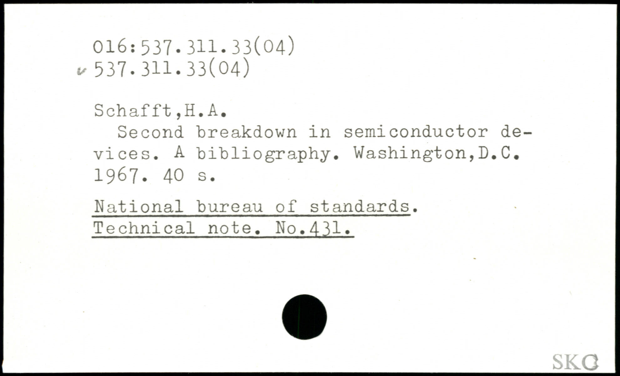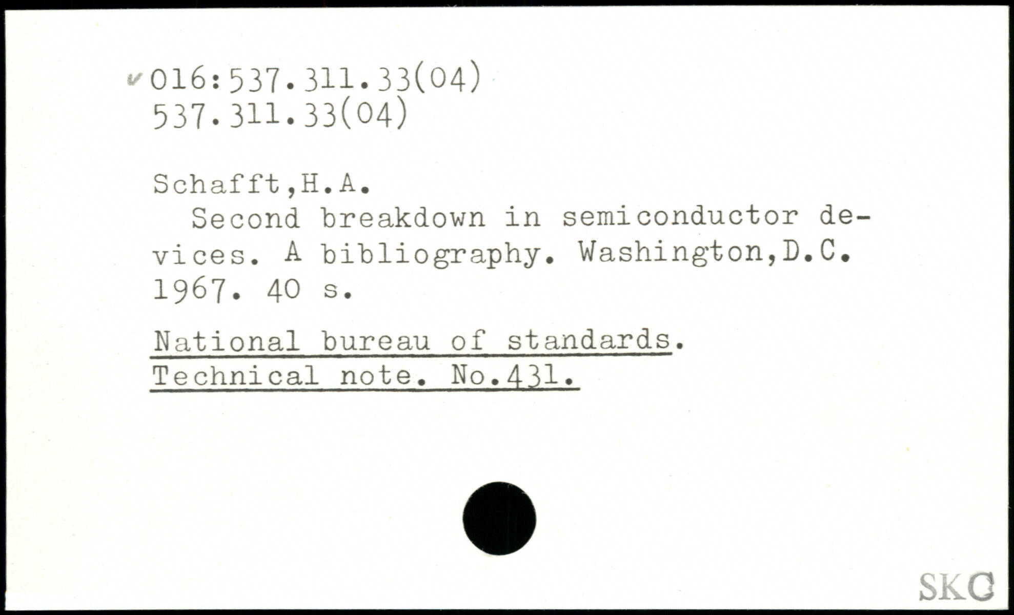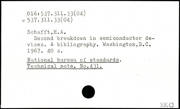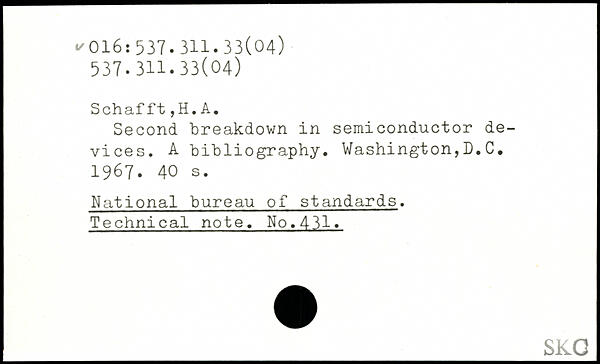 Second breakdown in semiconductor devices. A bibliography. Washington,D.C. 1967.