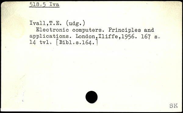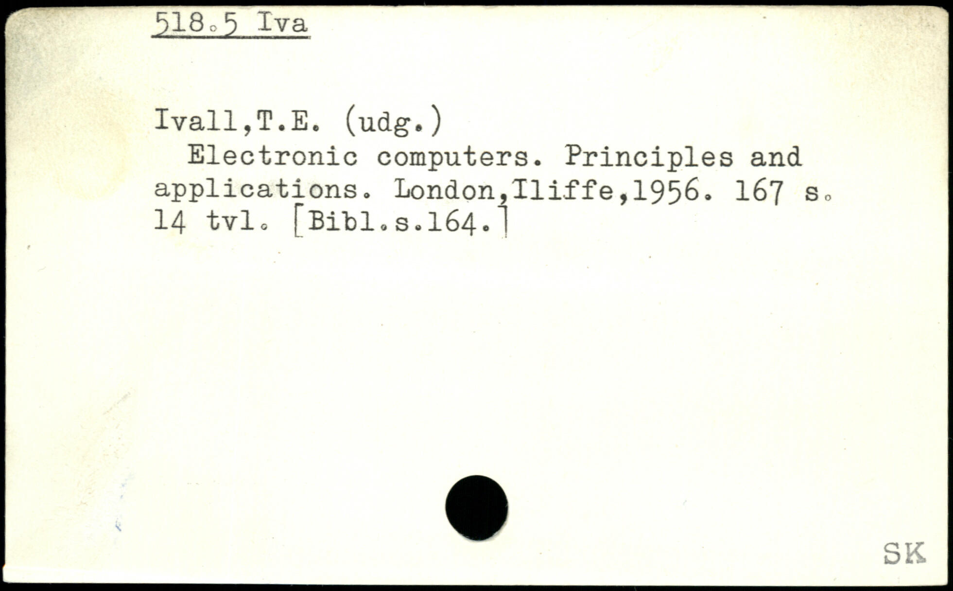 Electronic computers. Principles and applications. London,lliffe,1956.