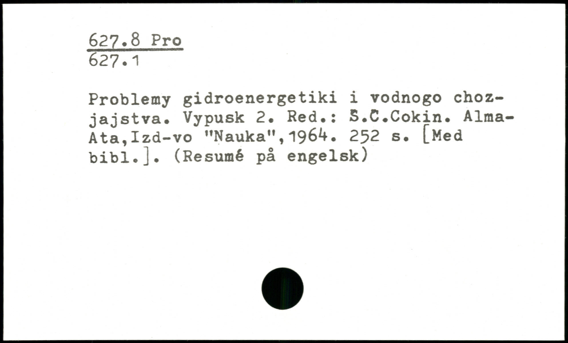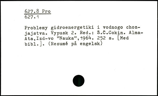 Problemy gidroenergetiki i vodnogo choz-jajstva. Vypusk 2. Red,: 5.C,Cokin, Alma-Ata, Izd-vo ”Nauka",1964.
