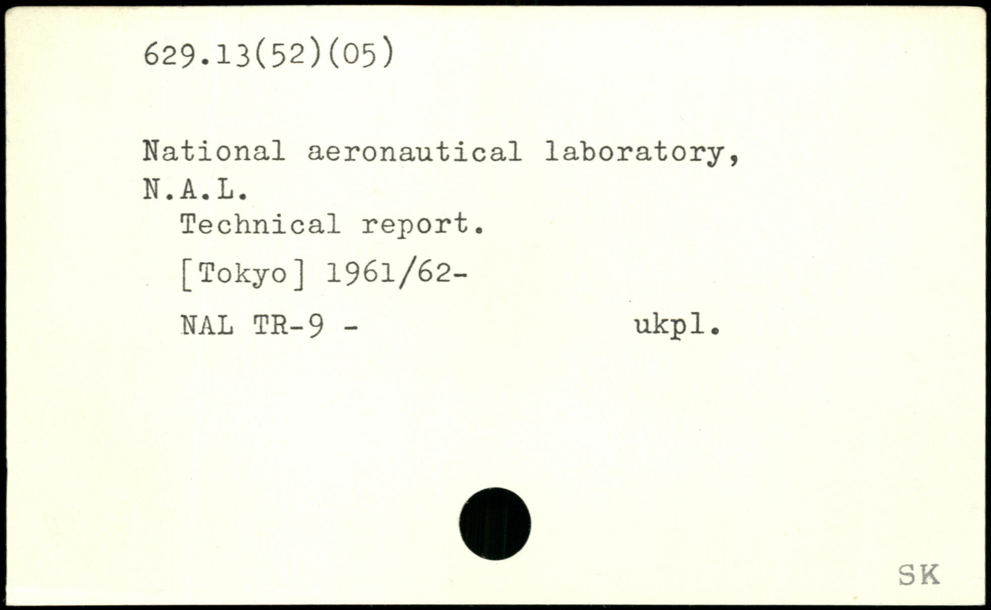 National aeronautical laboratory, N.A.L. Technical report.