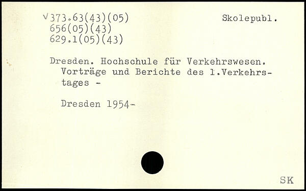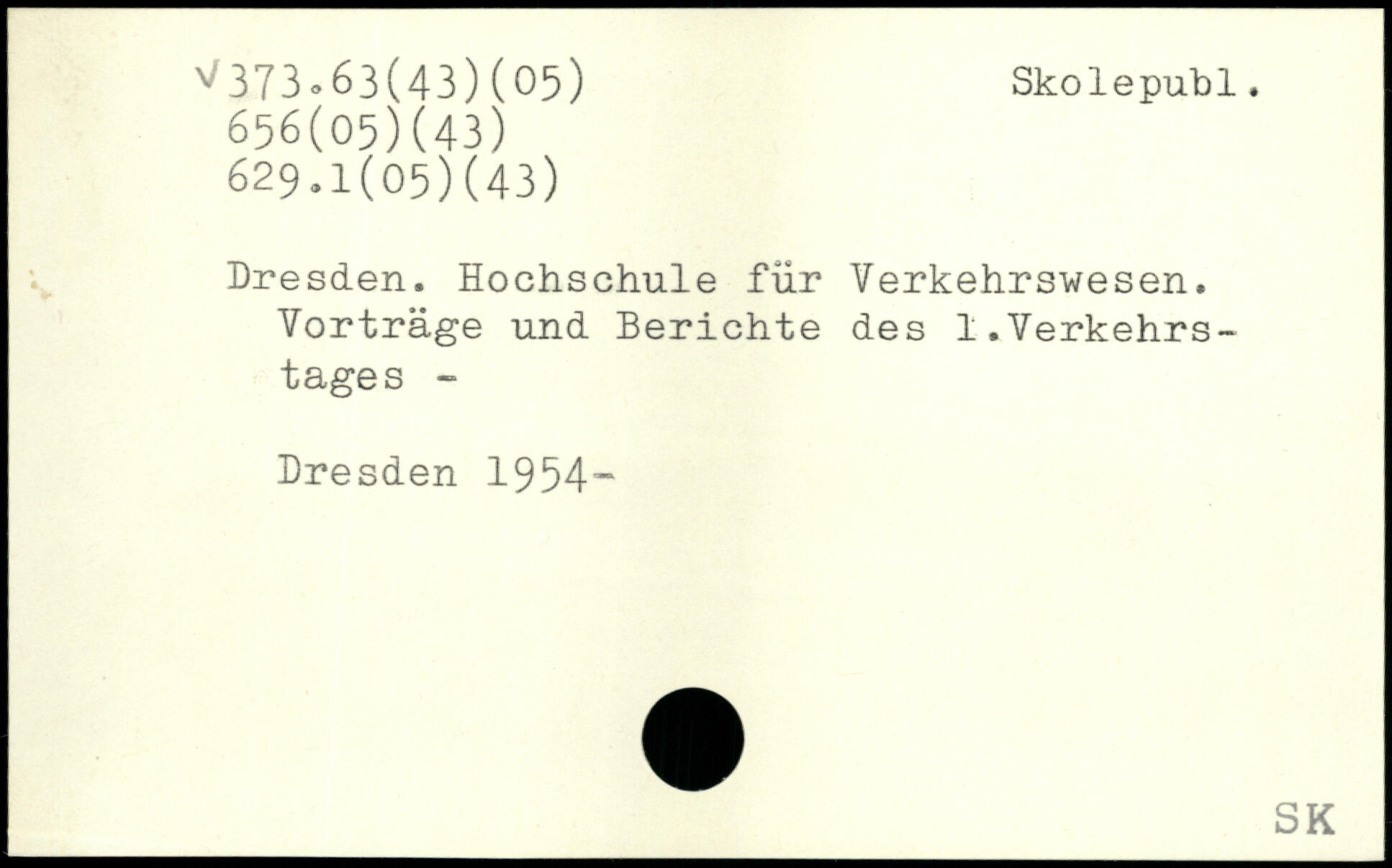 Dresden. Hochschule für Verkehrswesen. Vorträge und Berichte des 1.Verkehrstages - Dresden 1954-