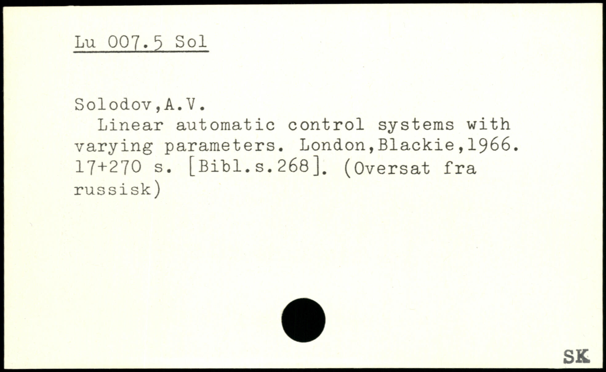 Linear automatic control systems with varying parameters.