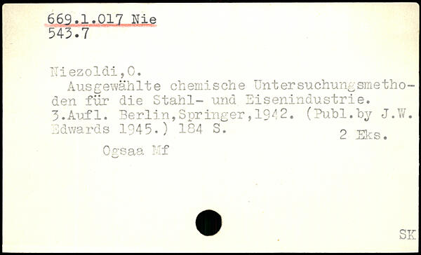 Ausgewählte chemische Untersuchungsmetho-den für die Stahl- und Eisenindustrie.