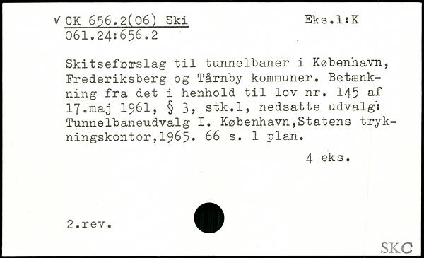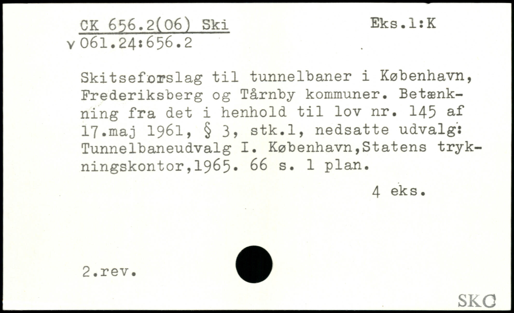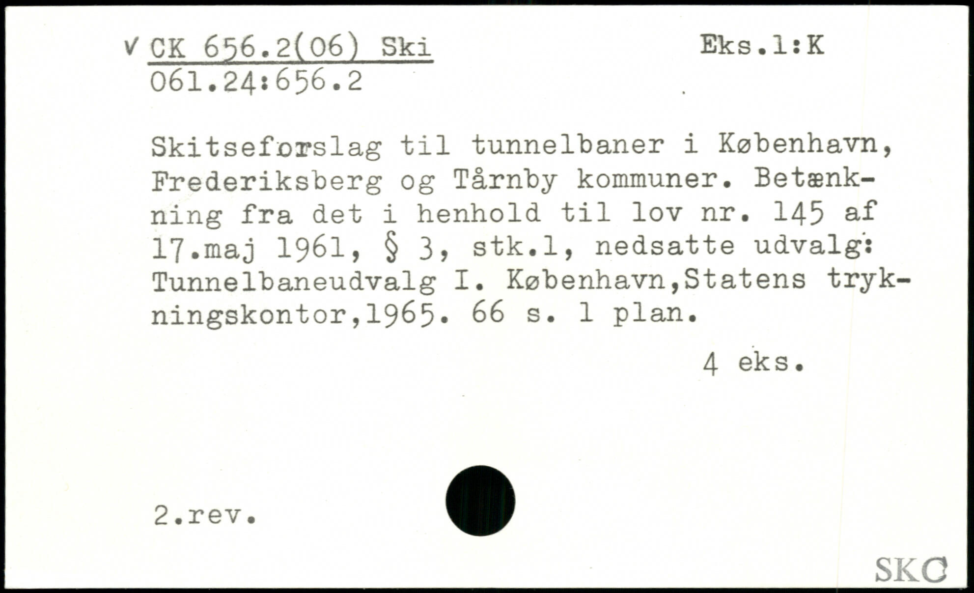 Skitseforslag til tunnelbaner i København, Frederiksberg og Tårnby kommuner. Betænkning fra det i henhold til lov nr. 145 af 17.maj 1961, § 3, stk.l, nedsatte udvalg': Tunnelbaneudvalg I.