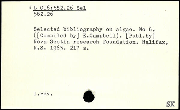 Selected bibliography on algae. No 6, ([Compiled by] E.Campbell).