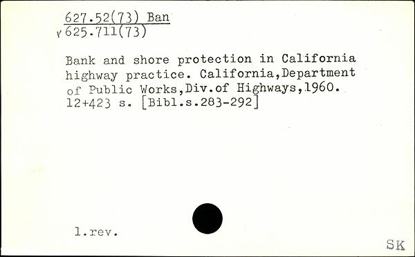 Bank and shore protection in California highway practice. California,Department of Public Works,Div.of Highways,1960.