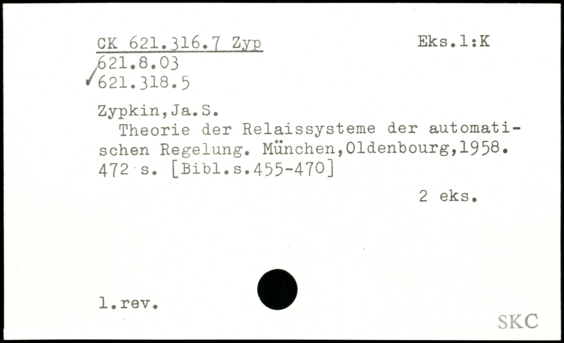 Theorie der Relaissysteme der automatischen Regelung.