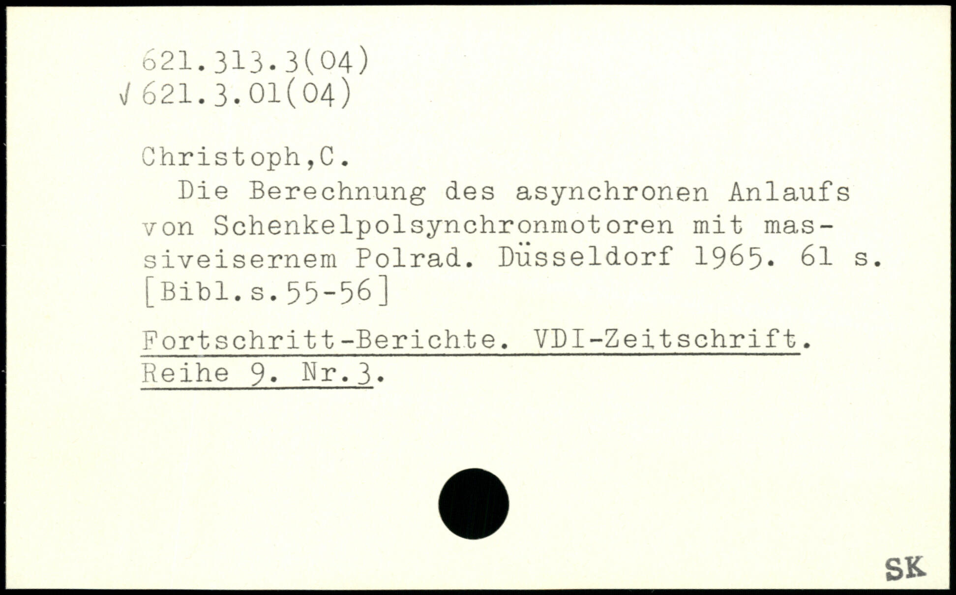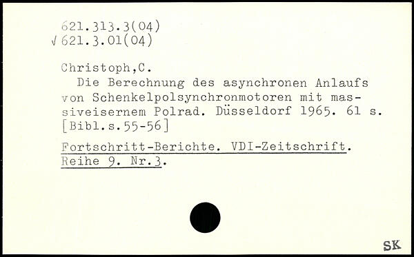 Die Berechnung des asynchronen Anlaufs von Schenkelpolsynchronmotoren mit massiveisernem Polrad. Düsseldorf 1965.