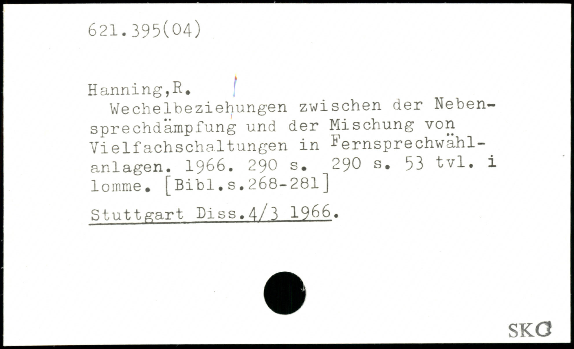 Wechelbeziehungen zwischen der Nebensprechdämpfung und der Mischung von Vielfachschaltungen in FernSprechwähl-^ anlagen. 1966.