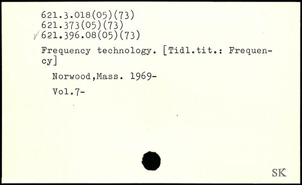 Frequency technology. [Tidl.tit.: Frequency] Norwood,Mass. 1969-