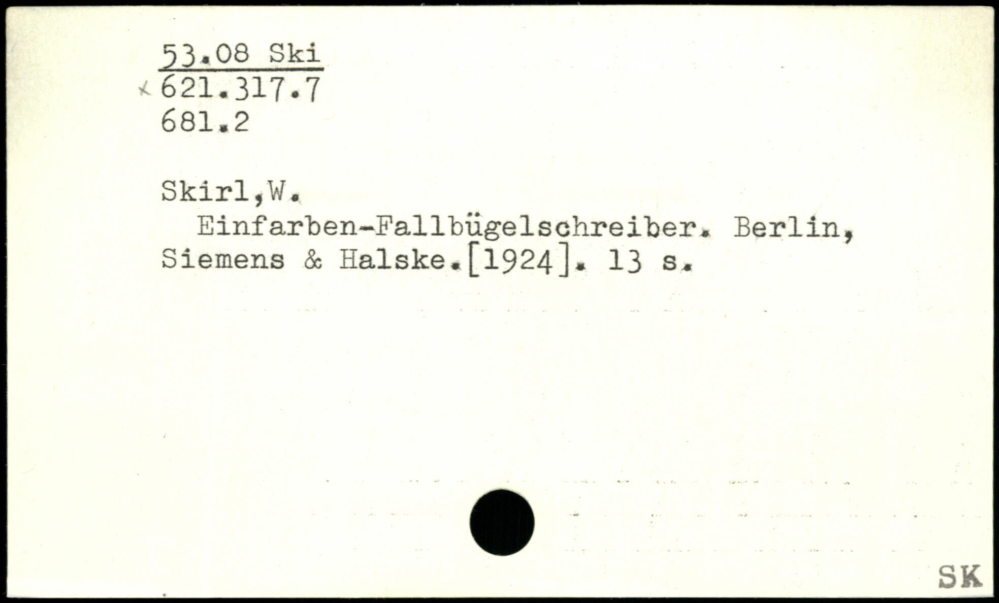 Einfarben-Fallbügelschreiber. Berlin, Siemens & Halske.[1924].
