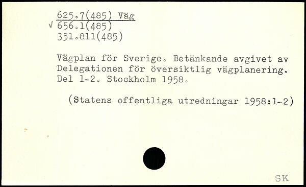 Vägplan för Sverige. Betänkande avgivet av Delegationen för Översiktlig vägplanering. Del 1-2