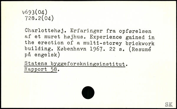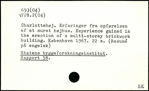 Charlottehøj. Erfaringer fra opførelsen af et muret højhus. Experience gained in the erection of a multi-storey brickwork building.