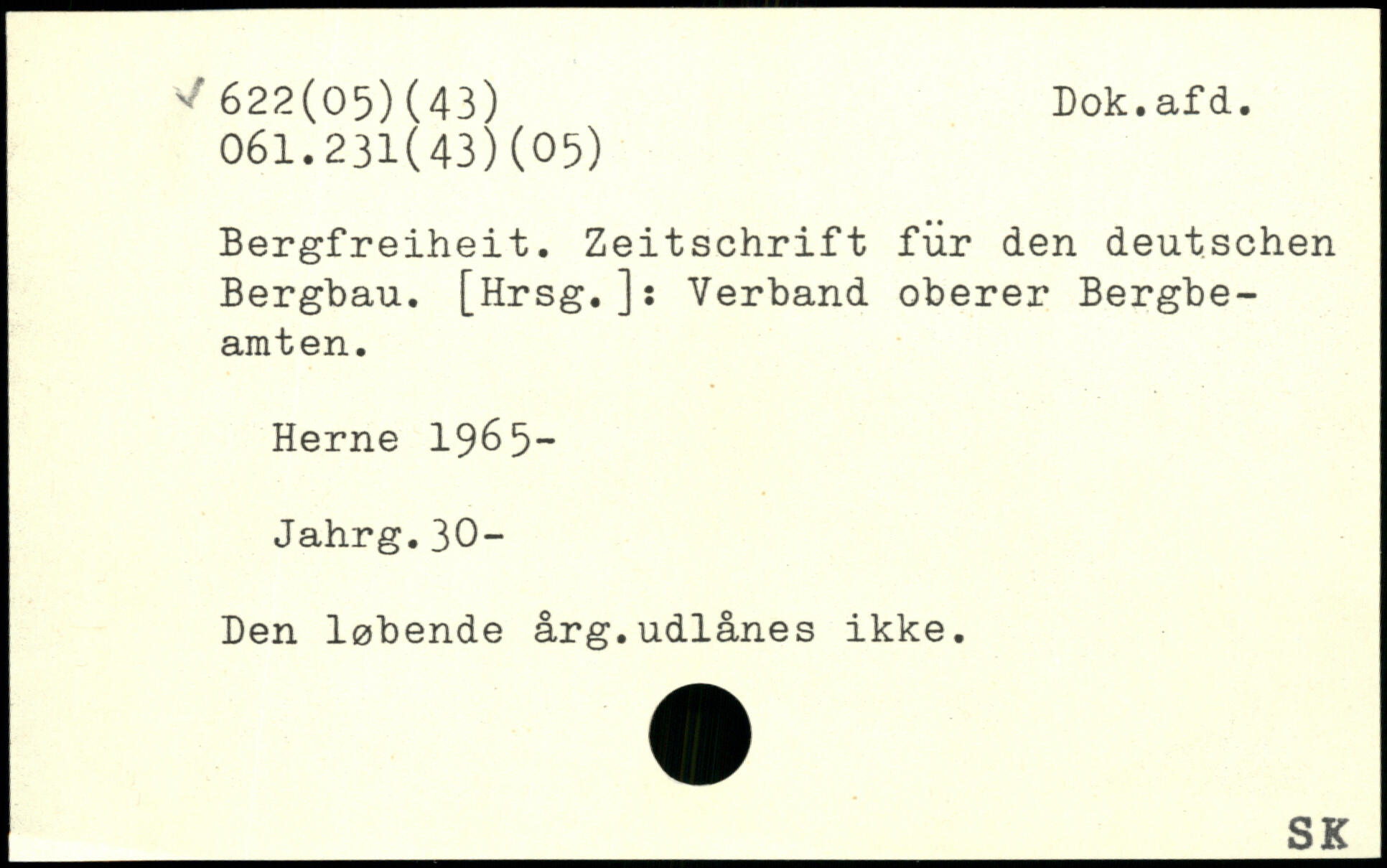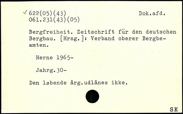 Bergfreiheit. Zeitschrift für den deutschen Bergbau. [Hrsg.]: Verband oberer Bergbe-amten. Herne 1965- Jahrg.30- Den løbende årg.udlånes ikke.