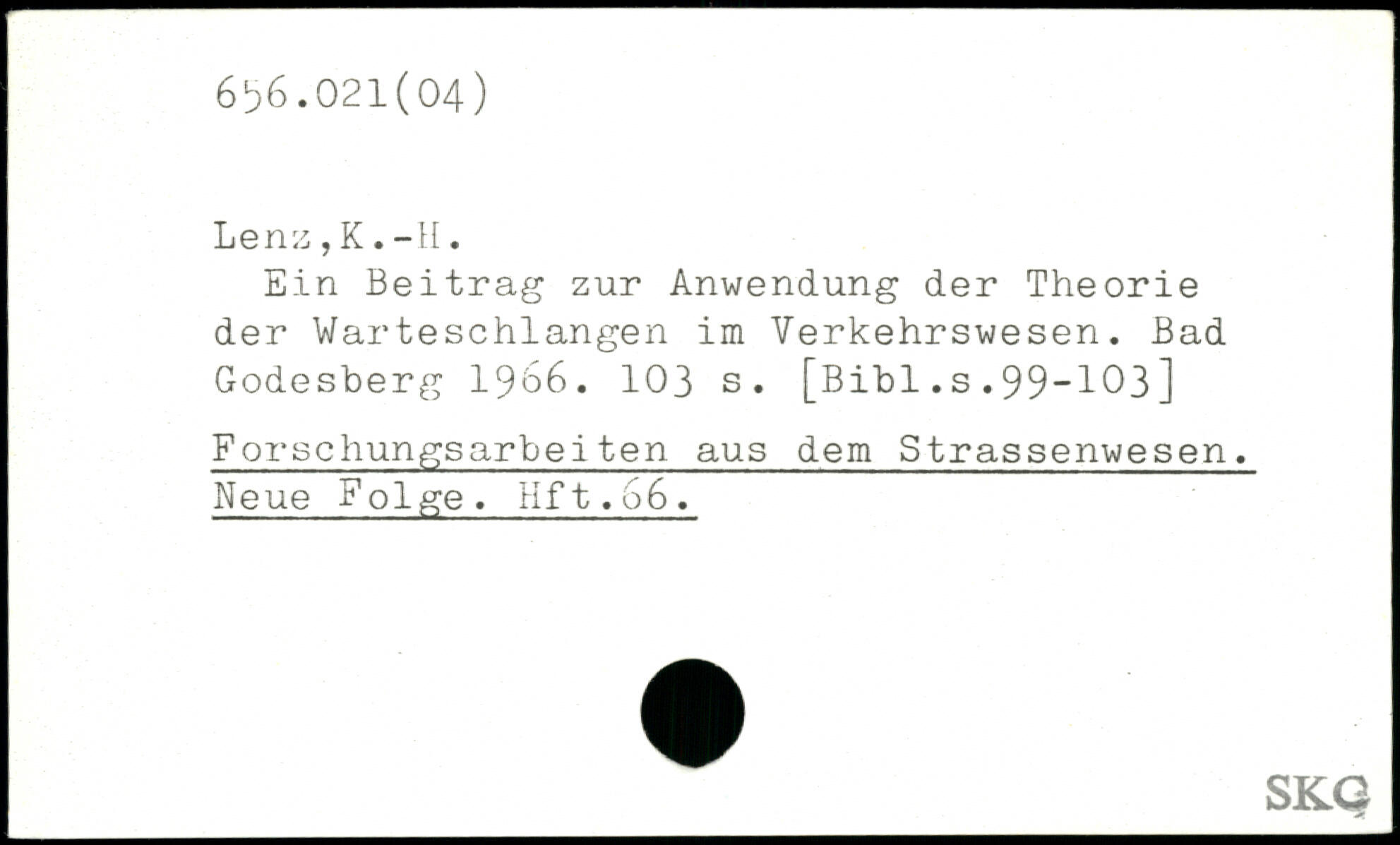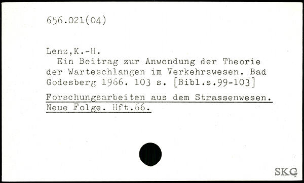 Ein Beitrag zur Anwendung der Theorie der Warteschlangen im Verkehrswesen. Bad Godesberg 1966.