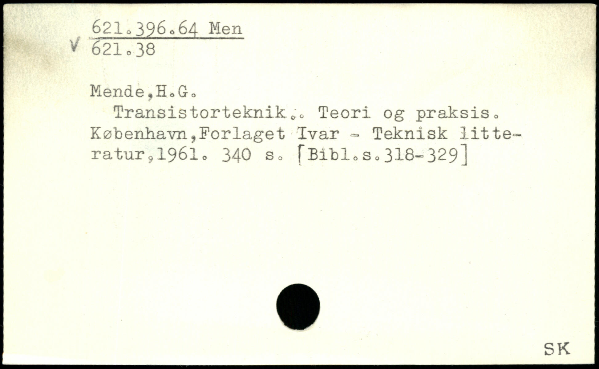 tf 621 o 38 Mende,H0Go Transistorteknik.o Teori og praksis, København .Forlaget Ivar - Teknisk litteratur 9 1961