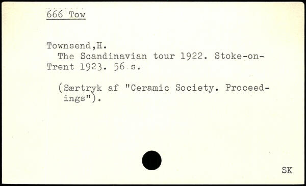 The Scandinavian tour 1922. Stoke-on-Trent 1923. 56s. (Særtryk af "Ceramic Society. Proceedings" ).