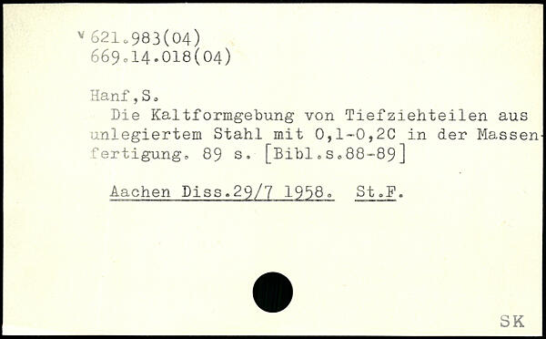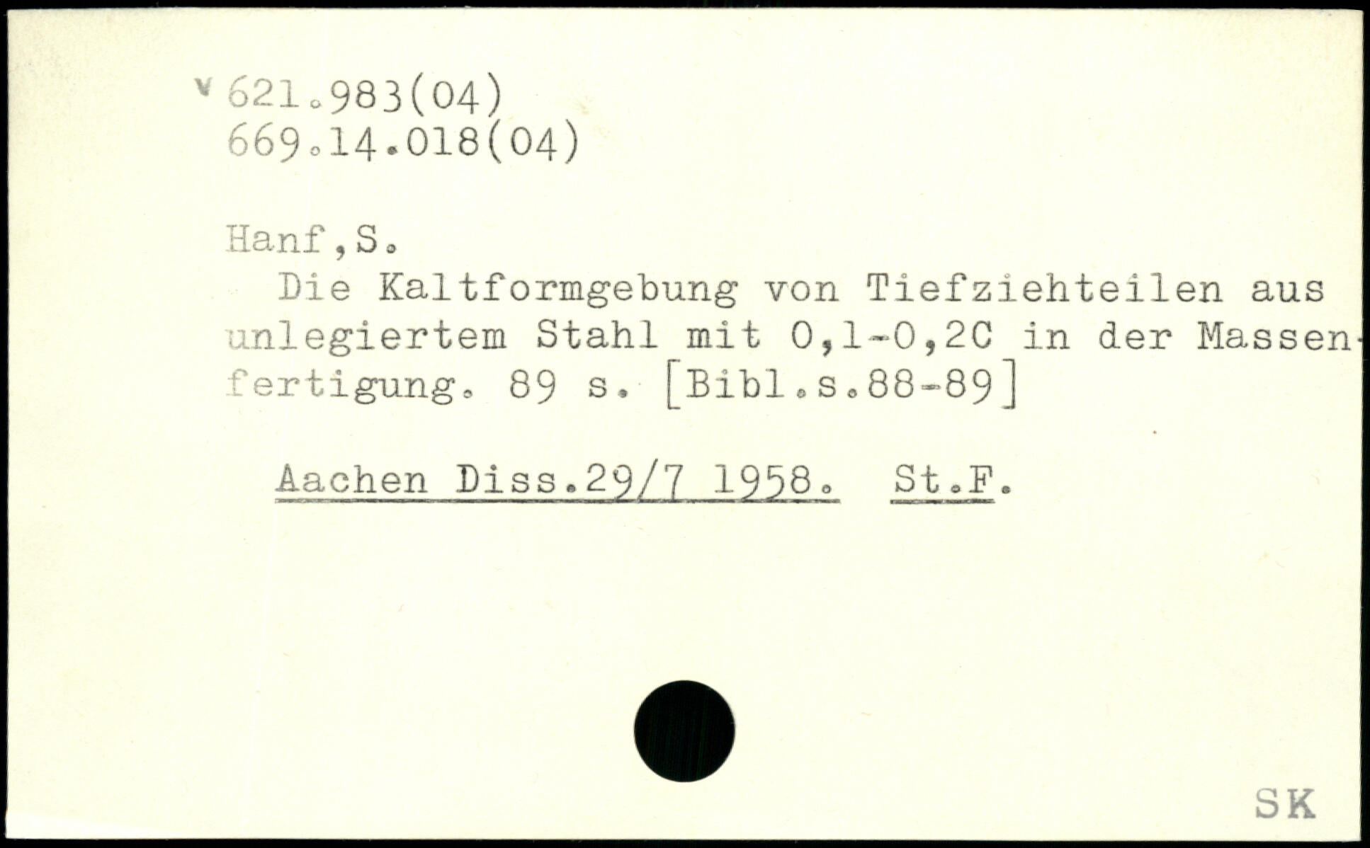 Die Kaltformgebung von Tiefziehteilen aus unlegiertem Stahl mit 0,1-0,2C in der Massen' fertigung