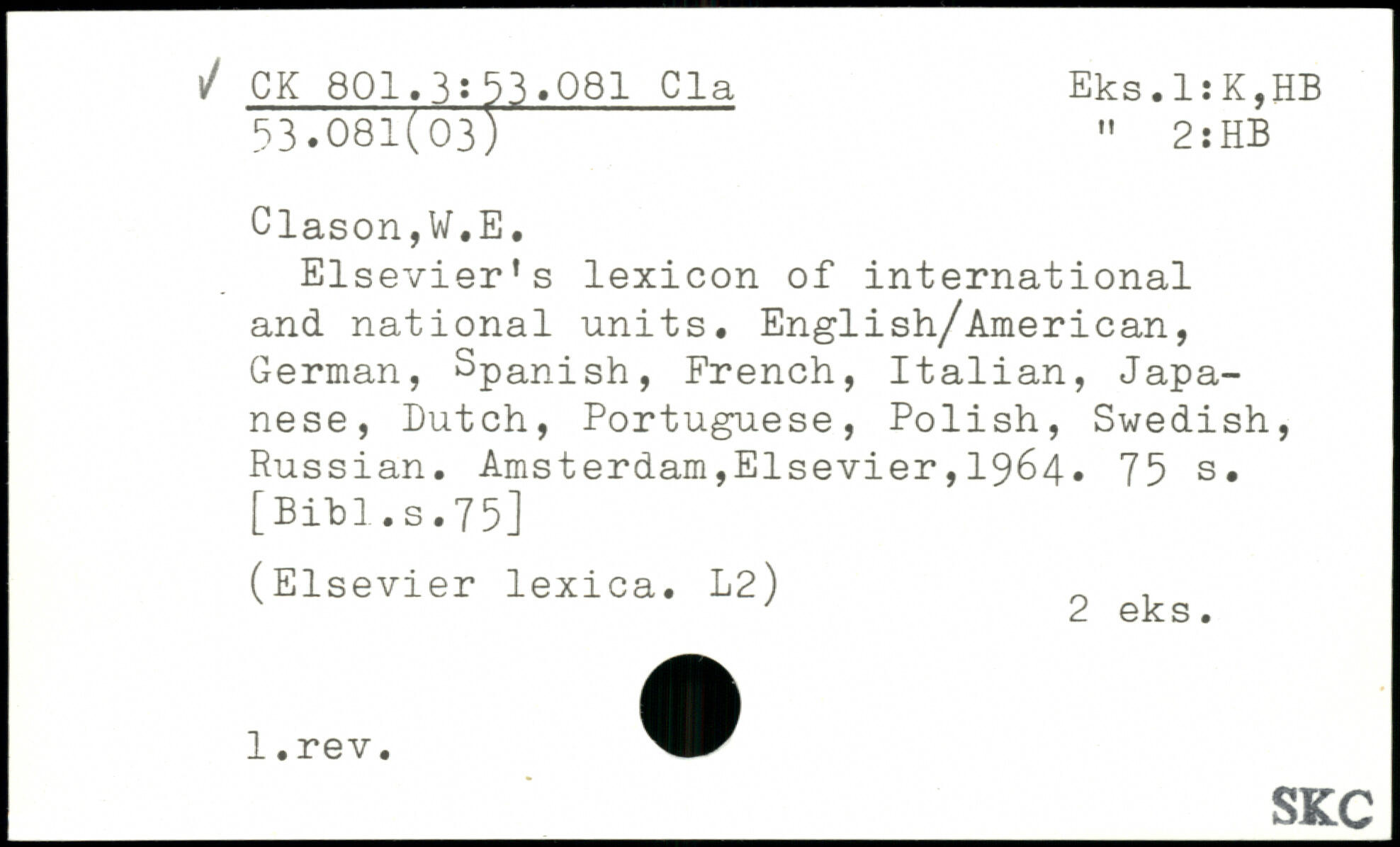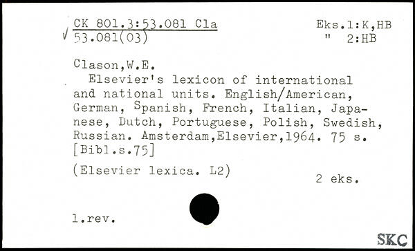 Elsevier's lexicon of international and national units. English/American, German, Spanish, French, Italian, Japanese, Dutch, Portuguese, Polish, Swedish, Russian.