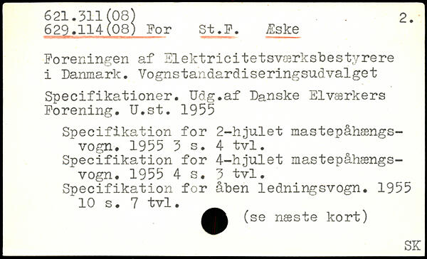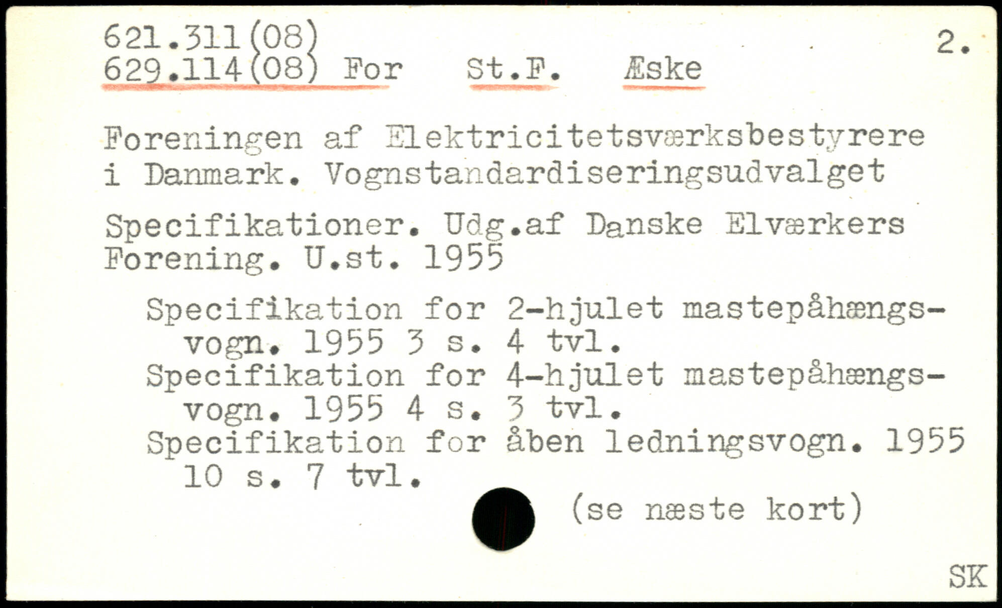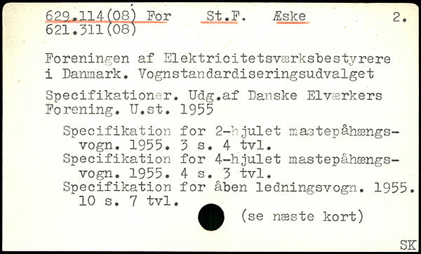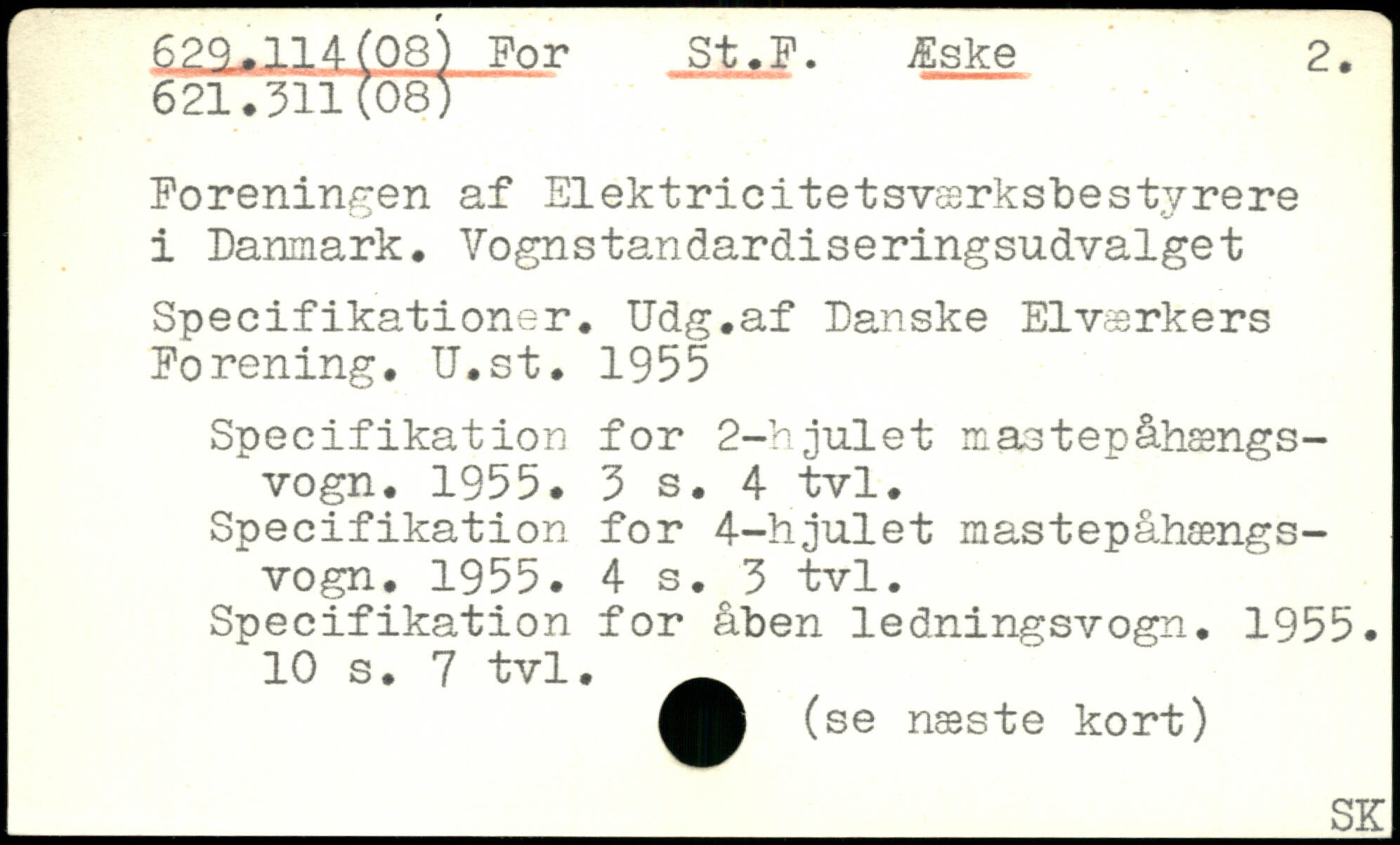 Foreningen af Elektricitetsværksbestyrere i Danmark. Vognstandardiseringsudvalget Specifikationer. Udg.af Danske Elværkers Forening. U.st.