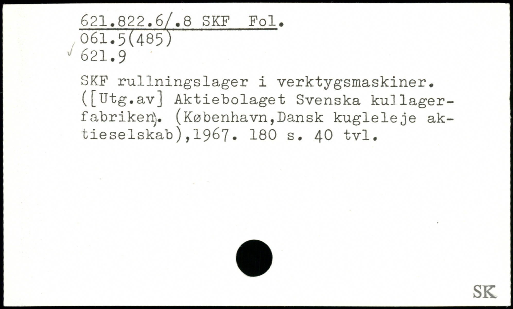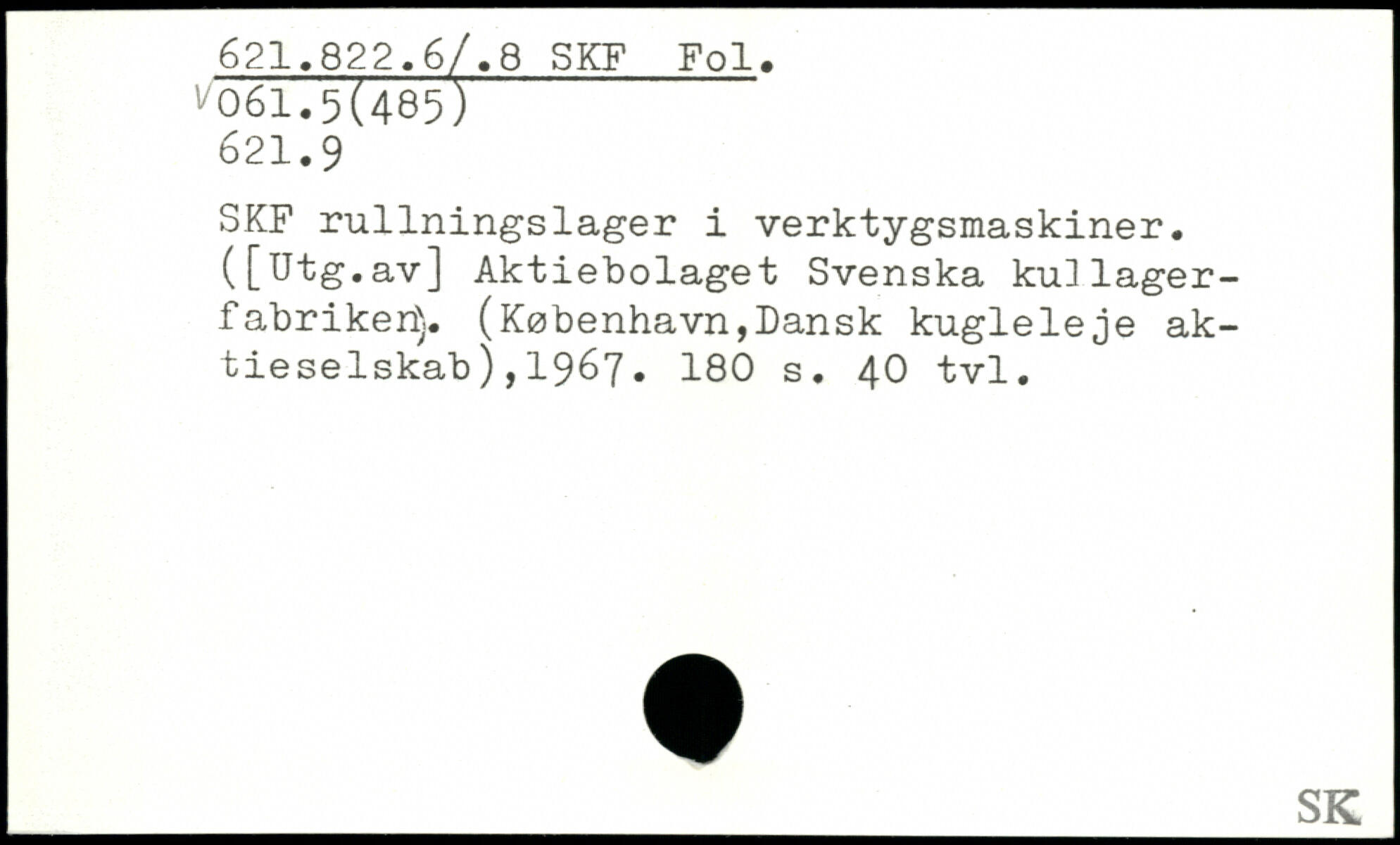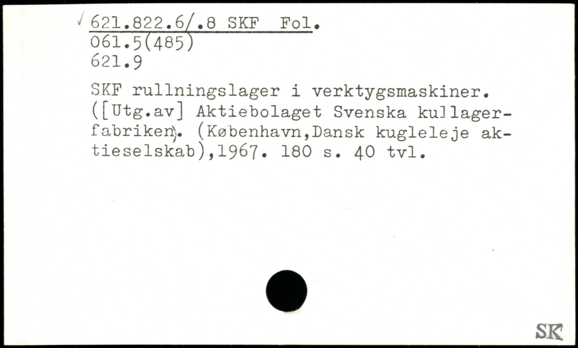 SKF rullningslager i verktygsmaskiner. ([Utg.av] Aktiebolaget Svenska kullager-fabriker^,. (København,Dansk kugleleje aktieselskab ),1967.