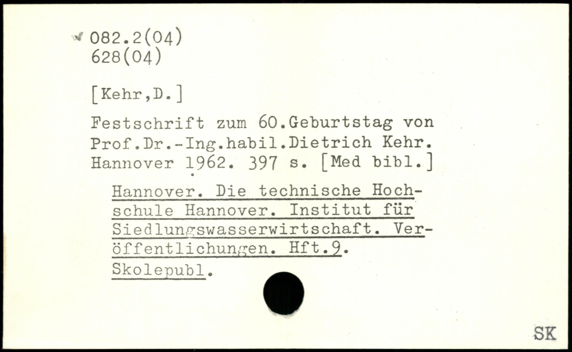 Festschrift zum 60.Gehurtstag von Prof.Dr.-Ing.habil.Dietrich Kehr.