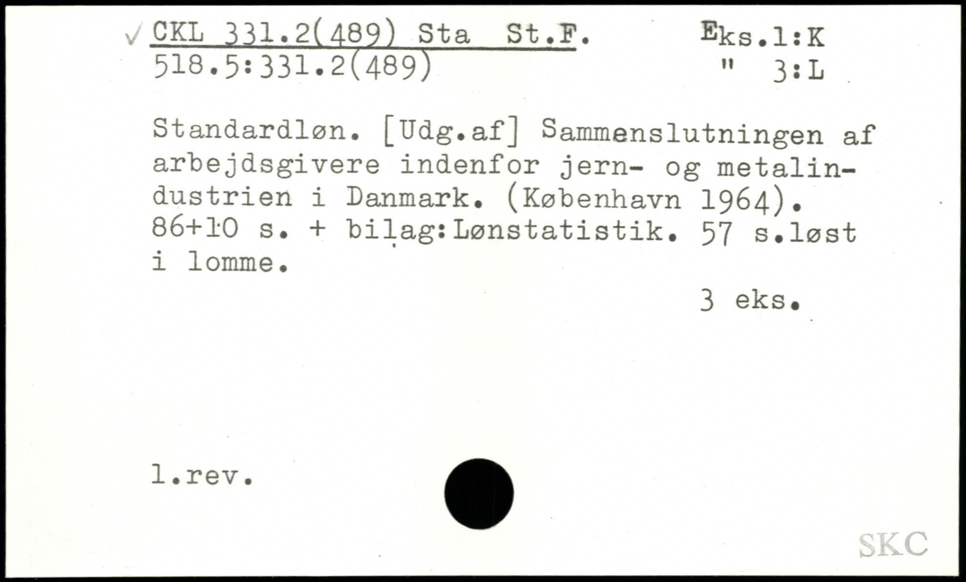 Standardløn. [Udg.af] Sammenslutningen af arbejdsgivere indenfor jern- og metalindustrien i Danmark. (
