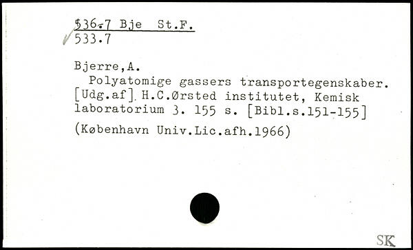 Polyatomige gassers transportegenskaber. [Udg. af ]. H. C .Ørsted institutet, Kemisk laboratorium 3.