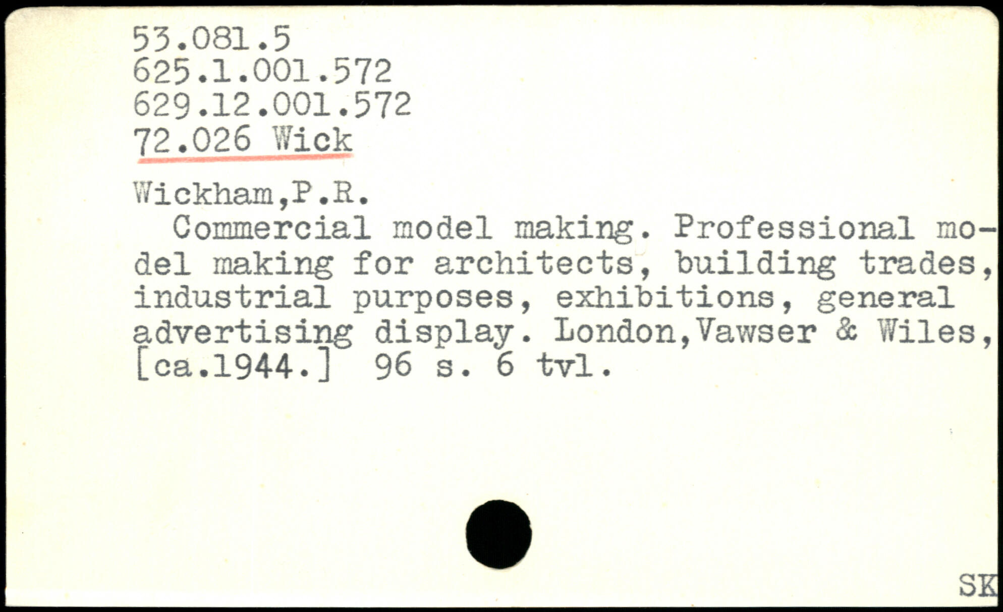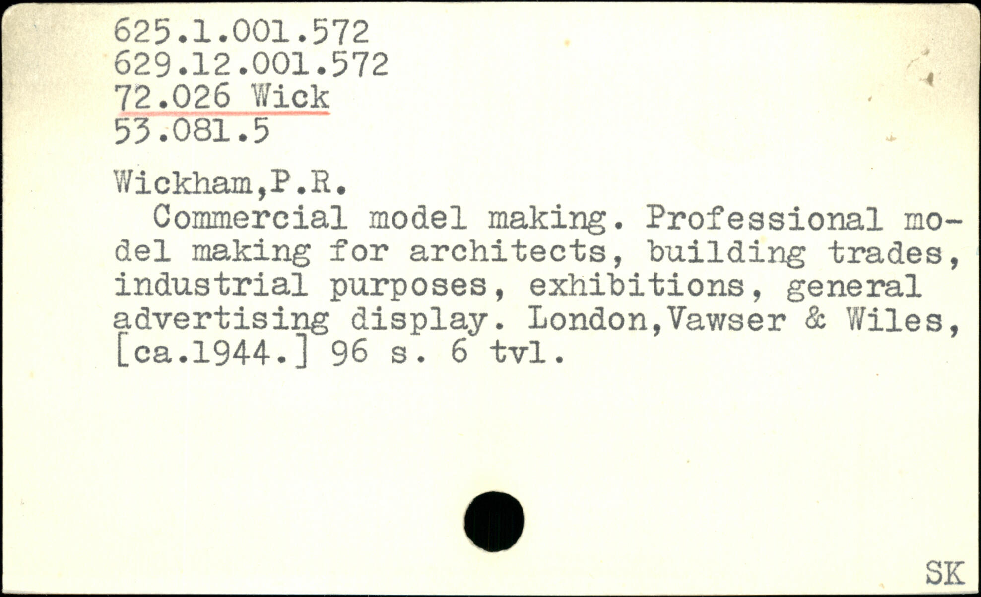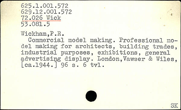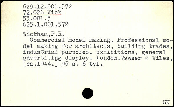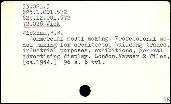 Y/ickham,P.R. Commercial model making. Professional model making for architects, building trades, industrial purposes, exhibitions, general advertising display. London,Vawser & Wiles, [ca.1944.]
