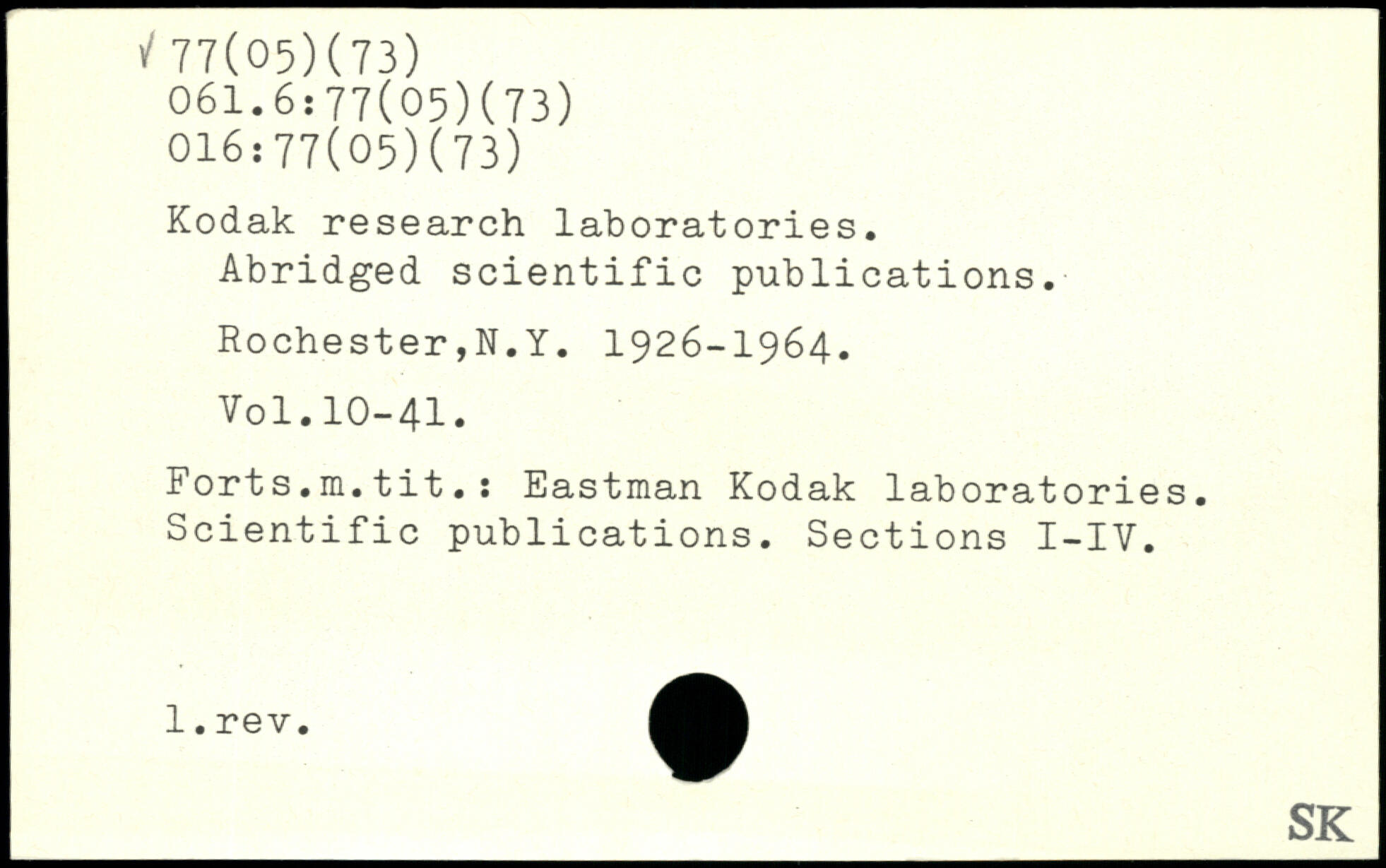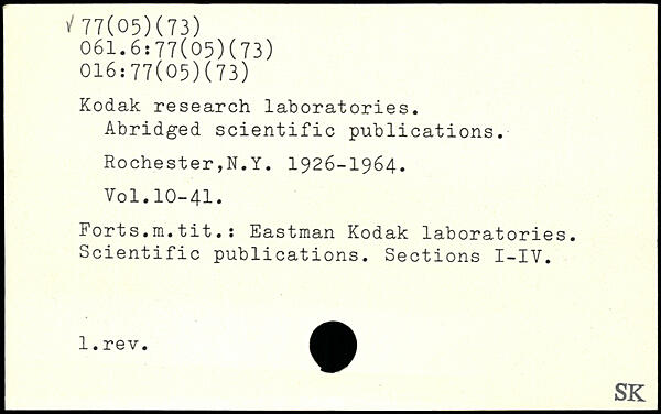 Kodak research laboratories. Abridged scientific publications. Rochester,N.Y. 1926-1964.