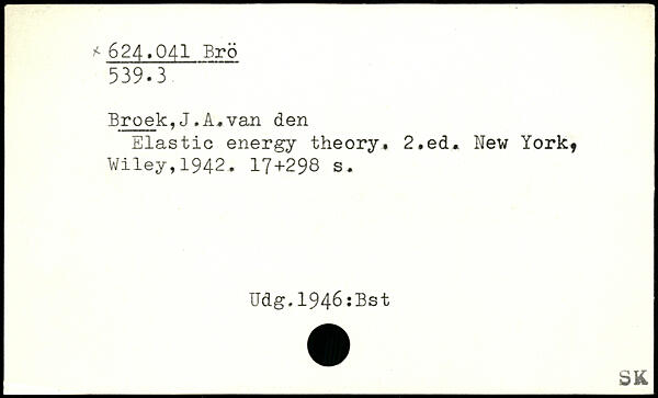 Broek,J.A.van den Elastic energy theory. 2,ed. New York. Wiley,1942.