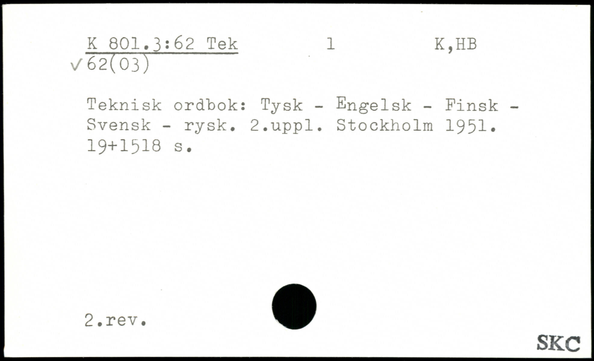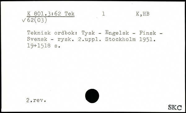 Teknisk ordkok: Tysk - Engelsk - Finsk -Svensk - rysk.