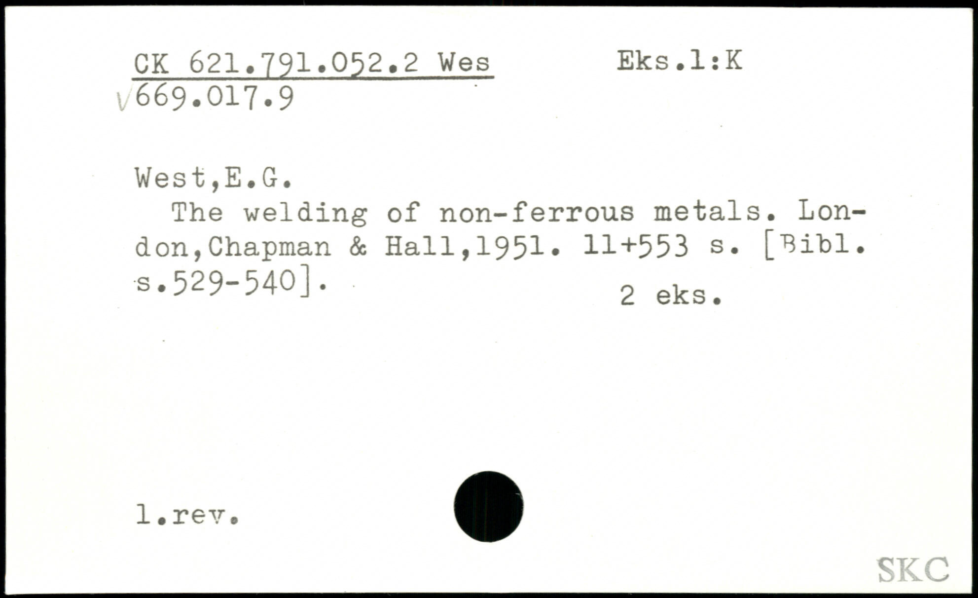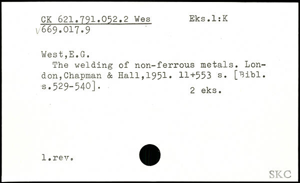 The welding of non-ferrous metals. London,Chapman & Hall,195L.