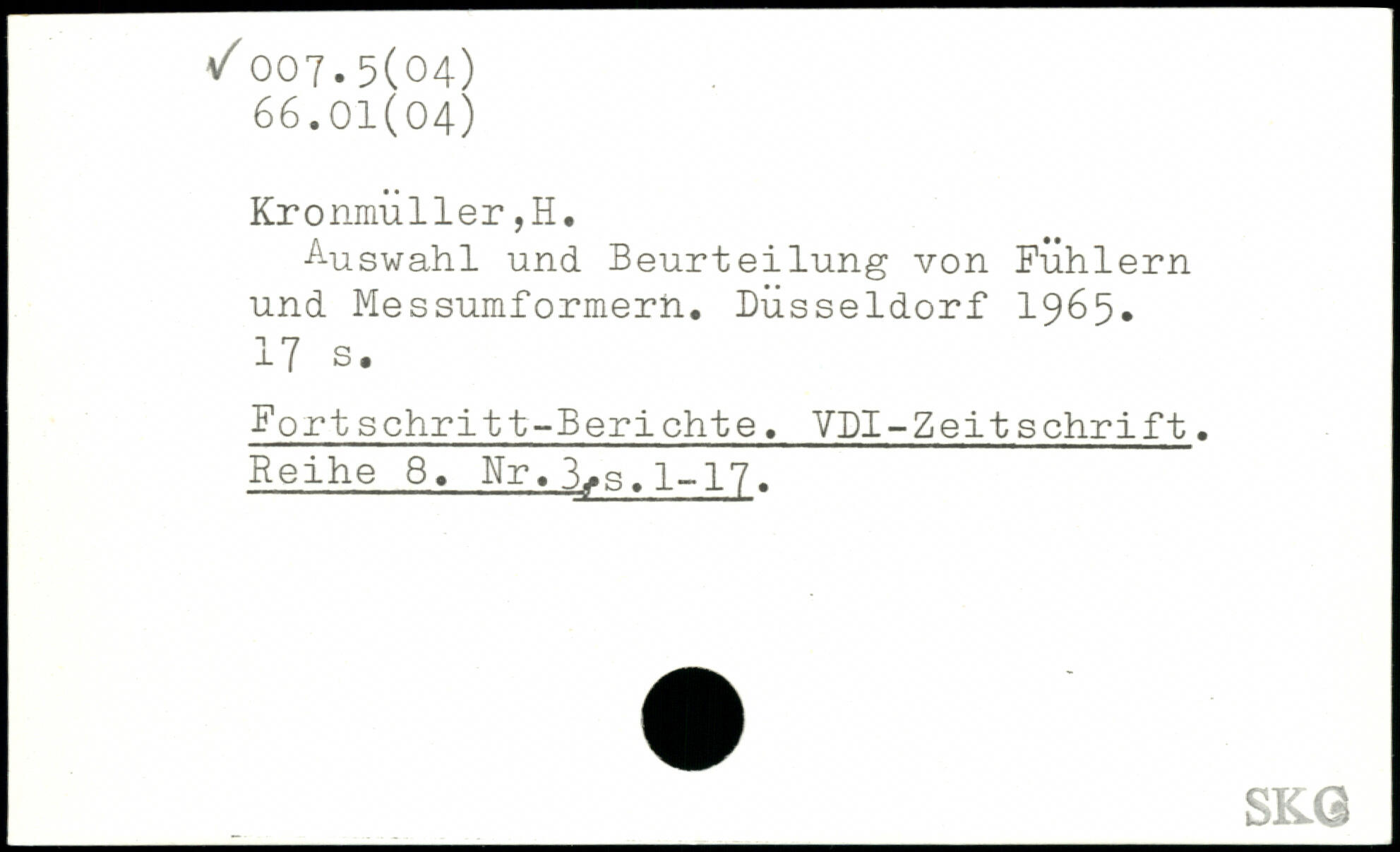 Auswahl und Beurteilung von Fühlern und Messumformern. Düsseldorf 1965.