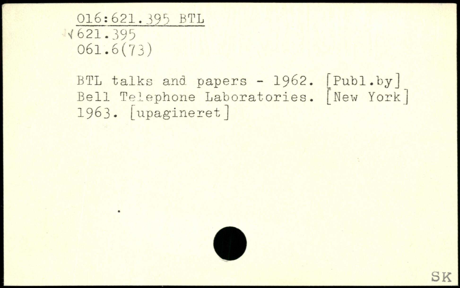 BTL talks and papers - 1962.