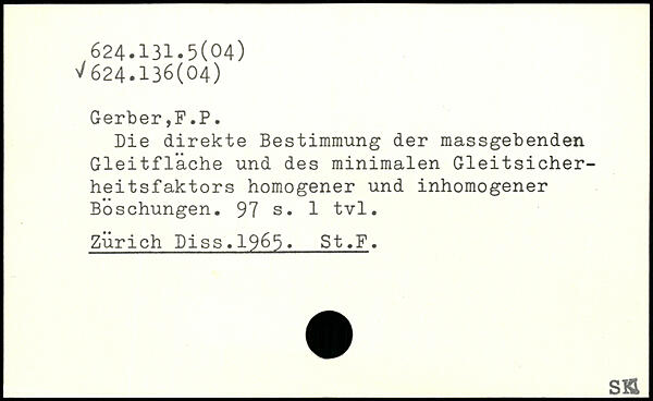 Die direkte Bestimmung der massgebenden Gleitflache und des minimalen Gleitsicherheitsfaktors homogener und inhomogener Böschungen.