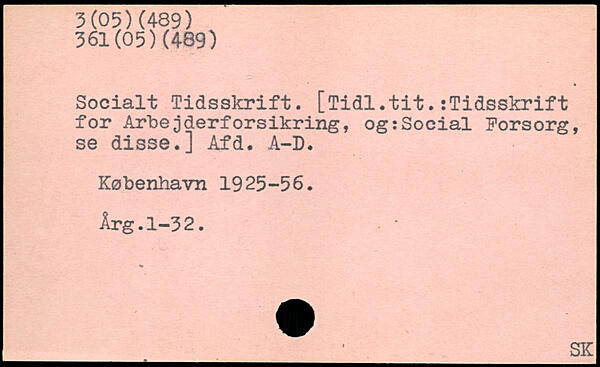 Socialt Tidsskrift. [Tidl.titTidsskrift for Arbejderforsikring, og:Social Forsorg, se disse.] Afd. A-D.