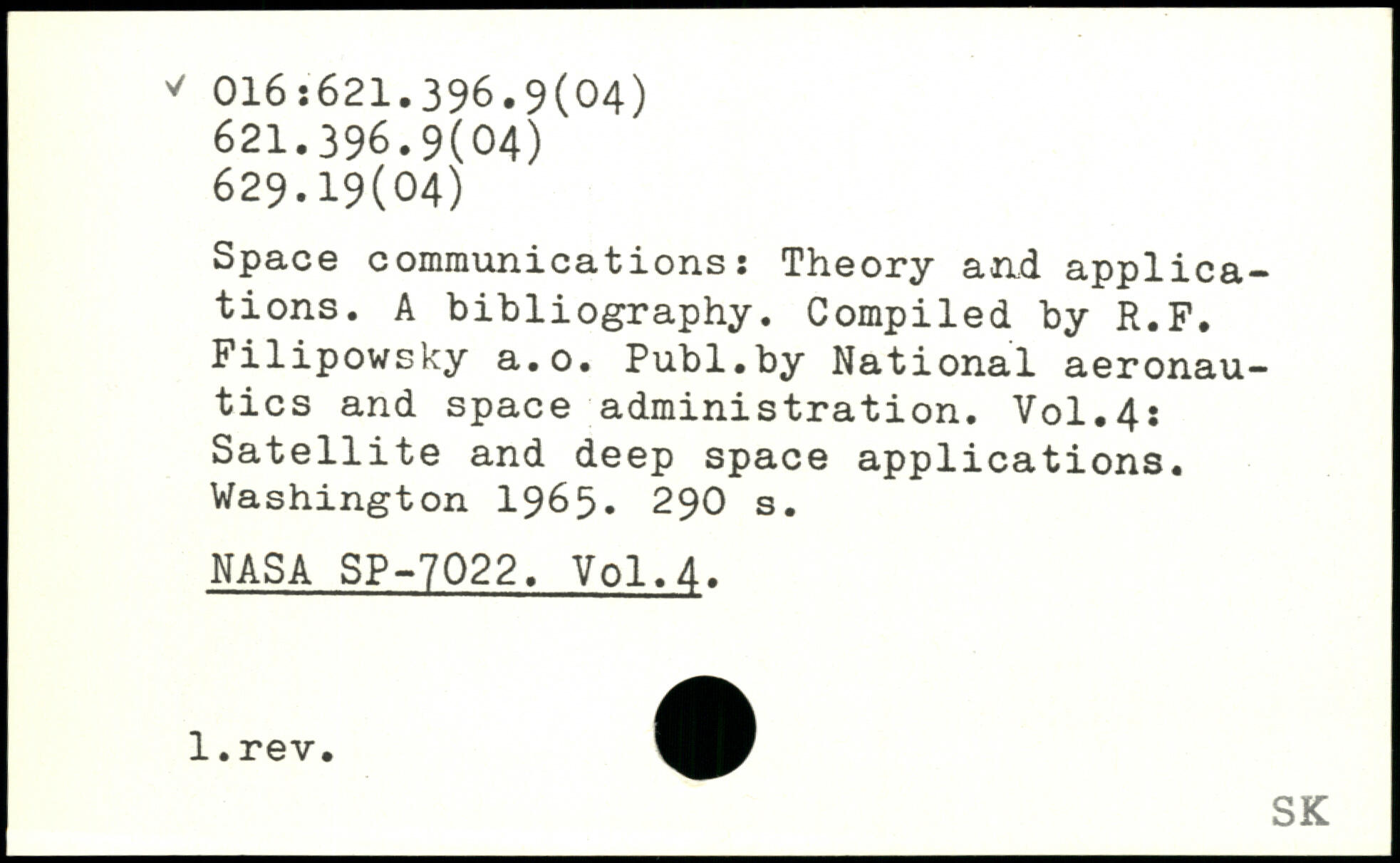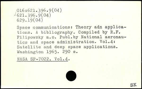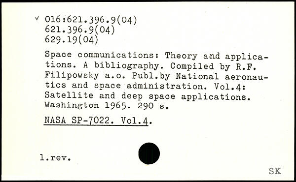 Space communications: Theory and. applications. A bibliography. Compiled by R.F. Filipowsky a.o.
