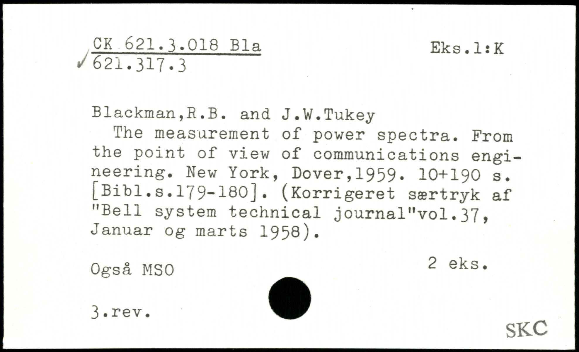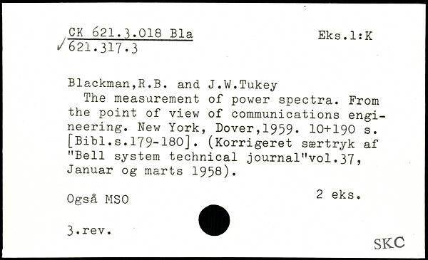 Forfatter: R.B. Blackman, J.W. Tukey